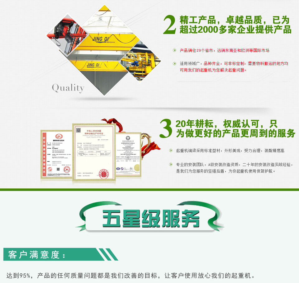 有需求才見專業(yè),有需求才見服務(wù),靖江起重專業(yè)的技術(shù)團(tuán)隊生產(chǎn)出來的起重機(jī)質(zhì)量非常好;產(chǎn)品性能優(yōu)良,質(zhì)量